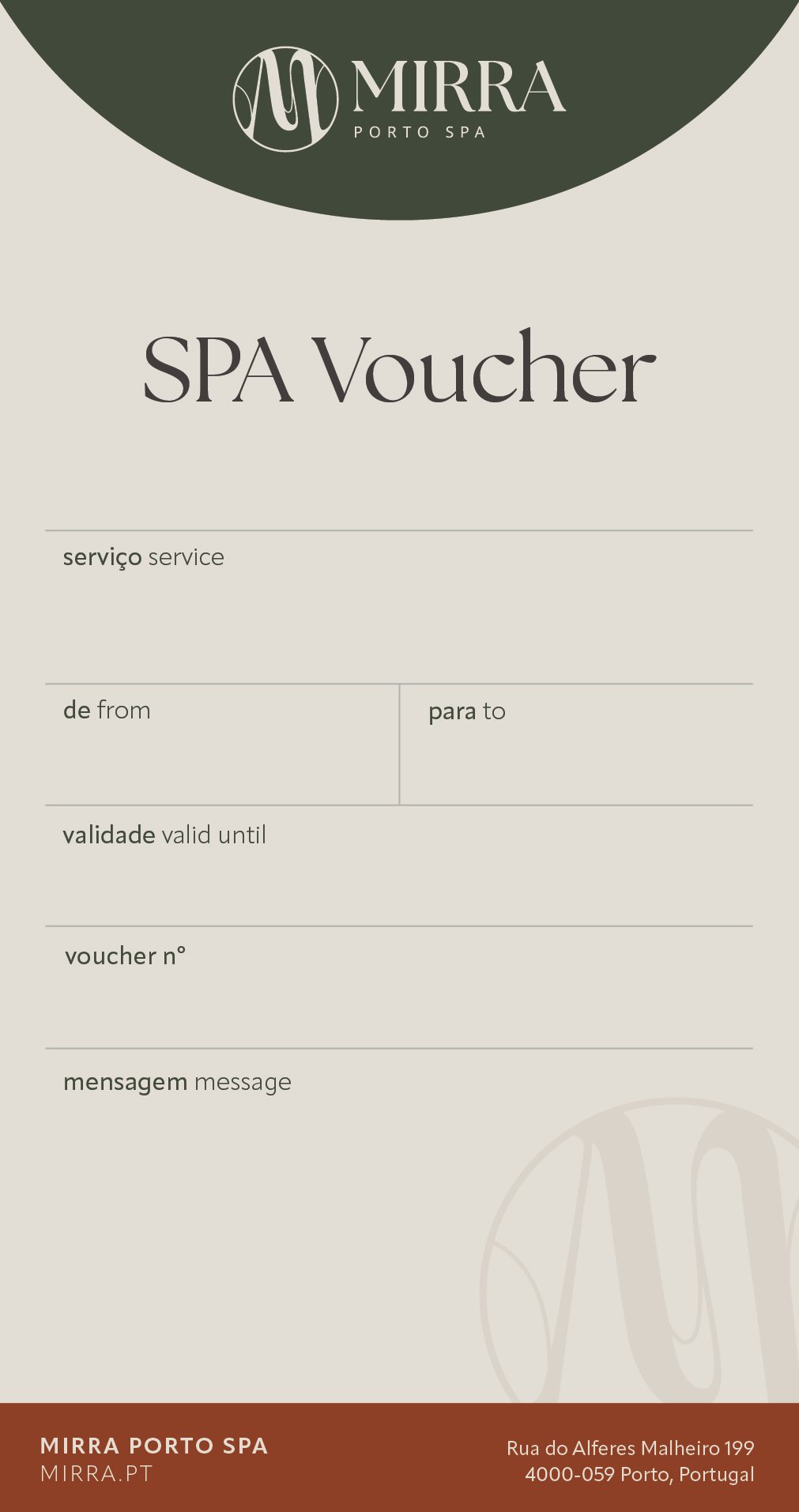 Os vouchers-presente / e-vouchers de experiência conterão um valor monetário ou serviço de tratamento.